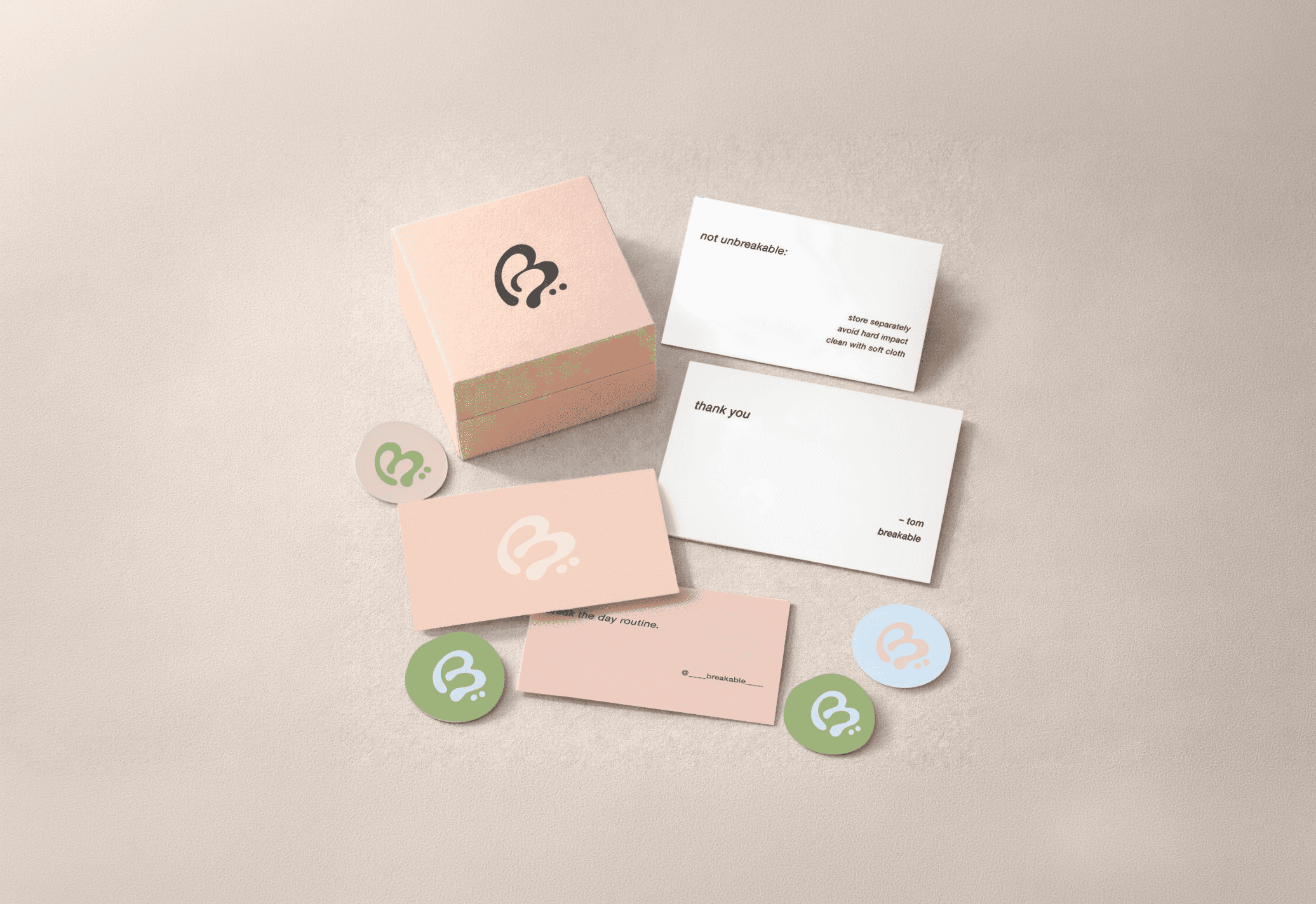 Breakable is a handmade glass jewelry project built around spontaneity and everyday presence. The identity translates fragility and gentle chaos into a cohesive visual language — one that feels glossy, organic, slightly weird, and intentionally off-balance.